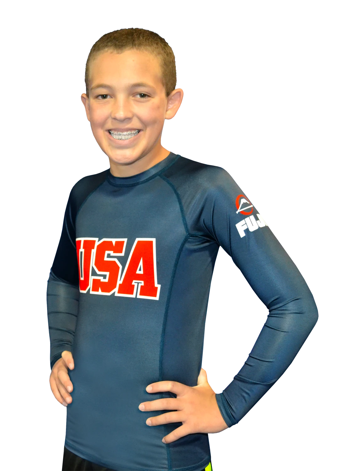 Show off your American pride while training in comfort and style with FUJI’s NEW USA Rash Guard! This fully sublimated long sleeve rash guard features a bold USA graphic on the front and the back that will never crack, peel or fade. Made of high quality anti-microbial fabric with reinforced stitching for long-lasting durability and extreme comfort.