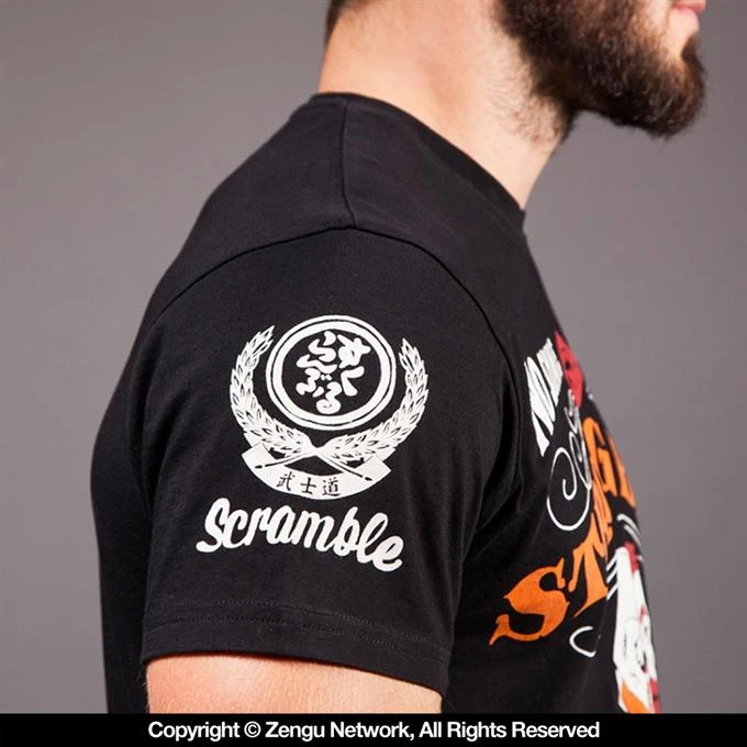 Scramble is again showing love for all of our whisker-flaunting fighters out there! After all, when you imagine a fearsome samurai disposing of his foe, do you see a clean shaven swordsman? No! Whether you’re in the early stages of beard-ery or the final, full-blown man-beard stage – or simply a supporter of bearded fighters – this is the tee for you. Made from a sturdy yet soft cotton with original graphics